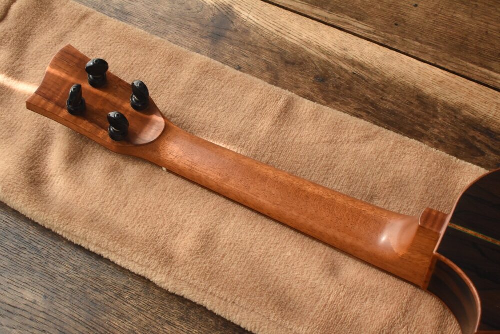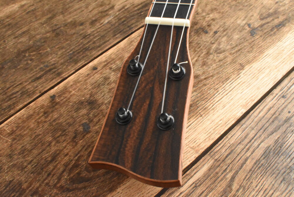 ヘッドにはあえてハチドリインレイ無し仕様 ジリコテの木目がとんでもなく映えまくります そしてヘッドにもハワイアンコアバインディング