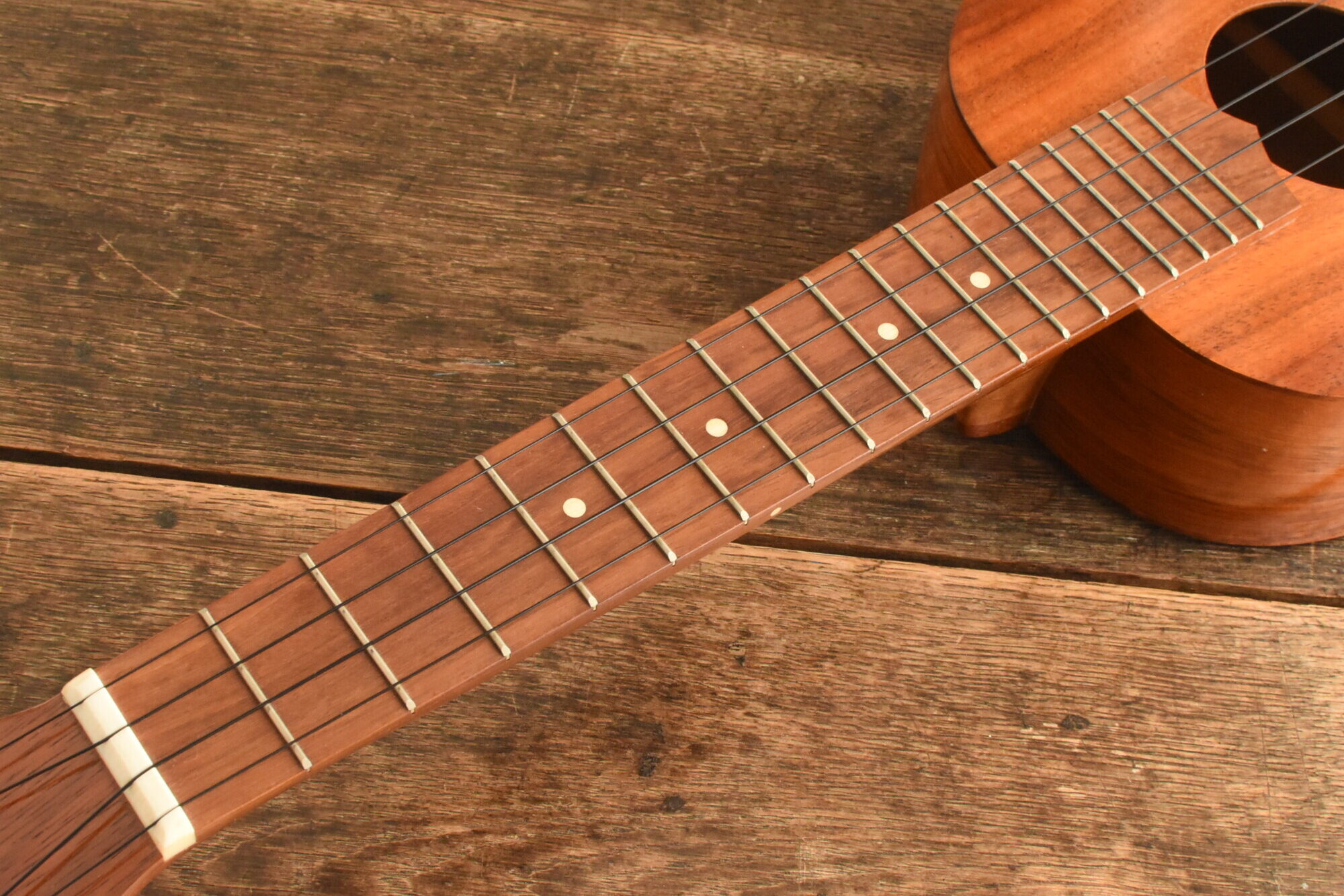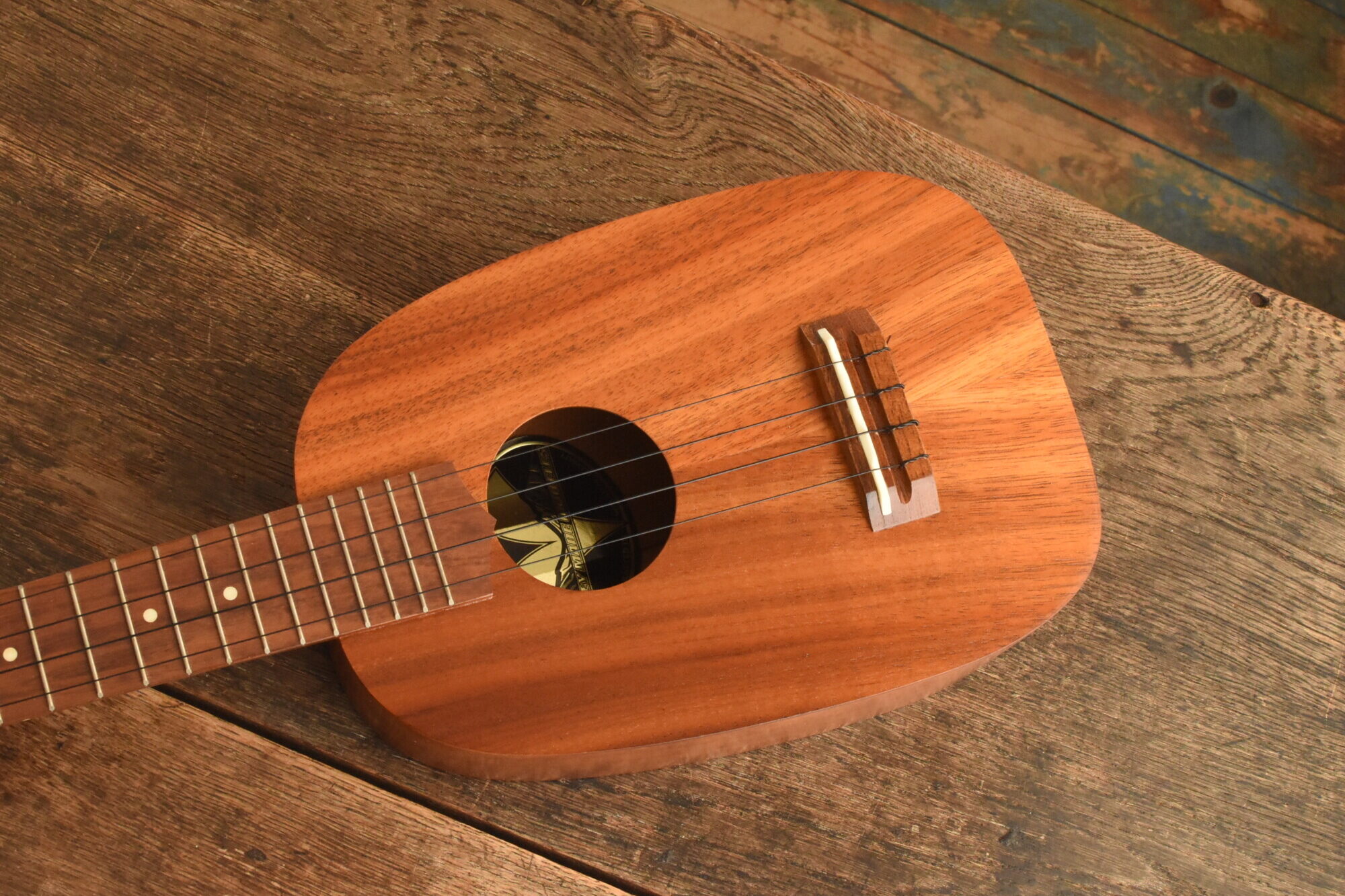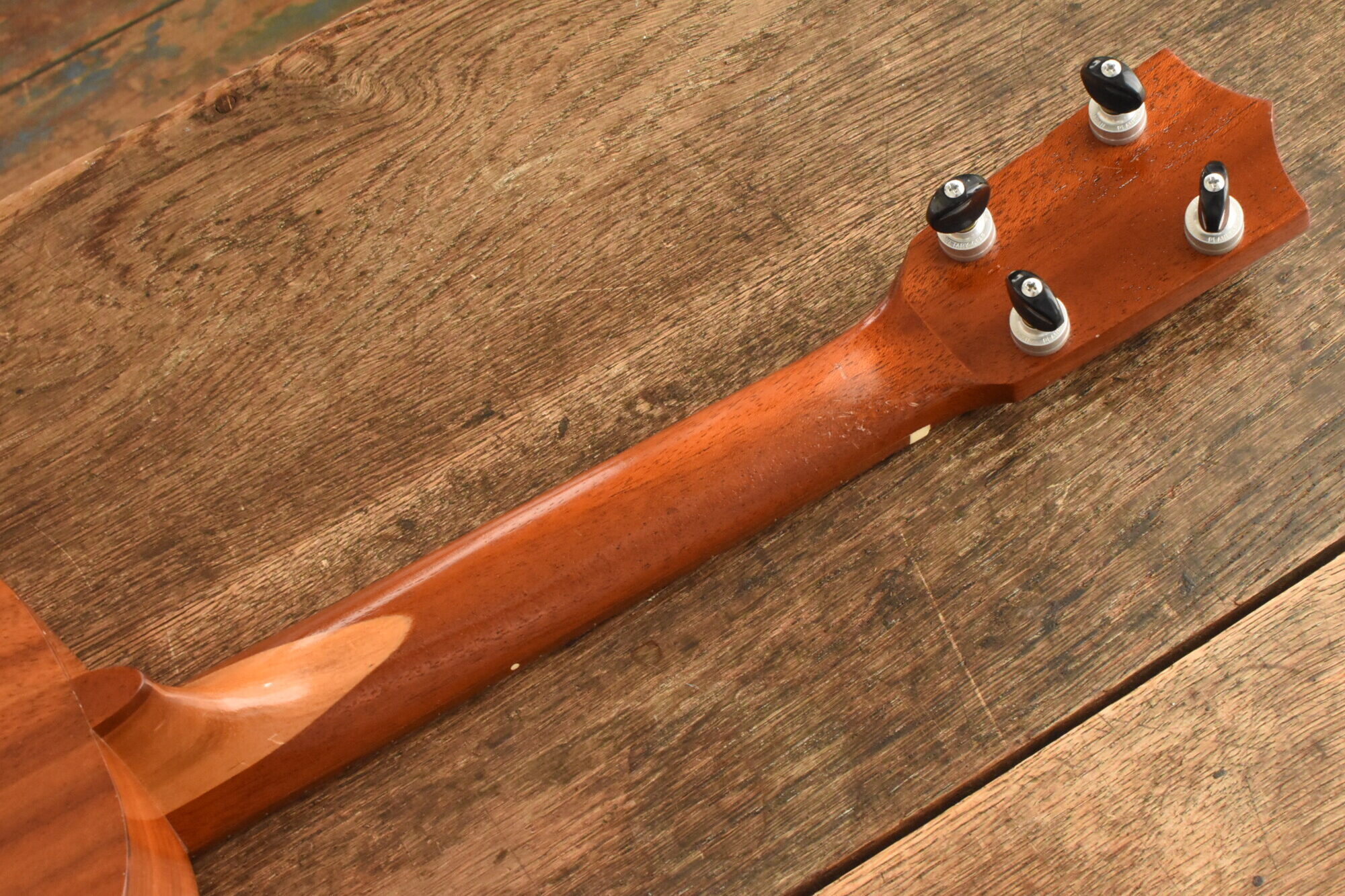 本器は可愛いパイナップルシェイプのソプラノボディに、381mmのコンサートスケールを採用したソプラノロングネックモデル。14Fジョイント・18F仕様。