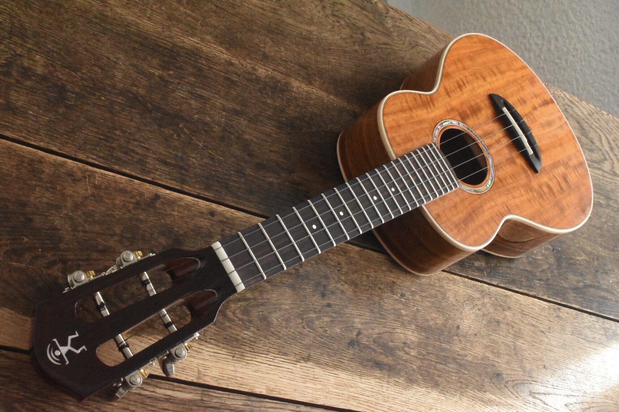 本器は台湾アカシア材を用いて製作された日本限定モデル。スケール380mmのコンサートサイズ。14Fジョイント・20F仕様。