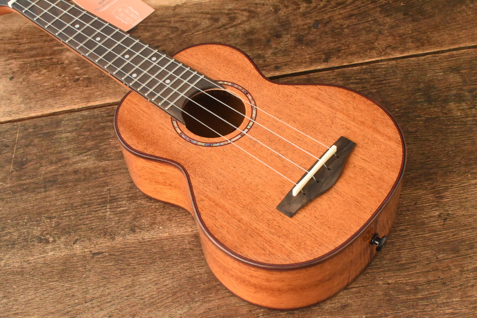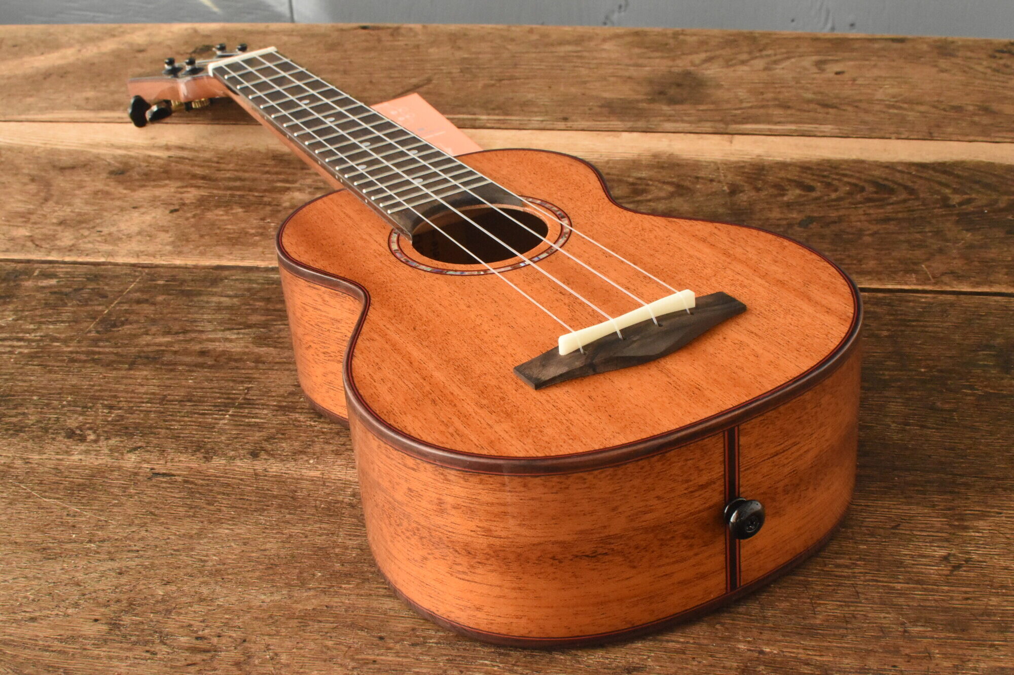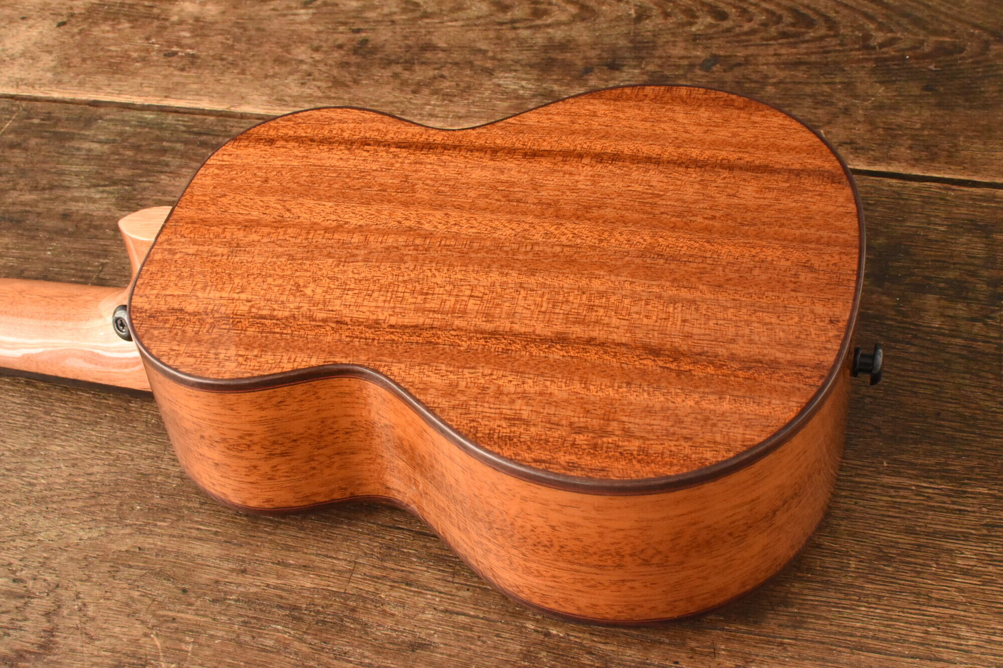 ボディにはアフリカンマホガニー単板を使用。ネックにはオクメ、指板&ブリッジにはローズウッドを使用しています。