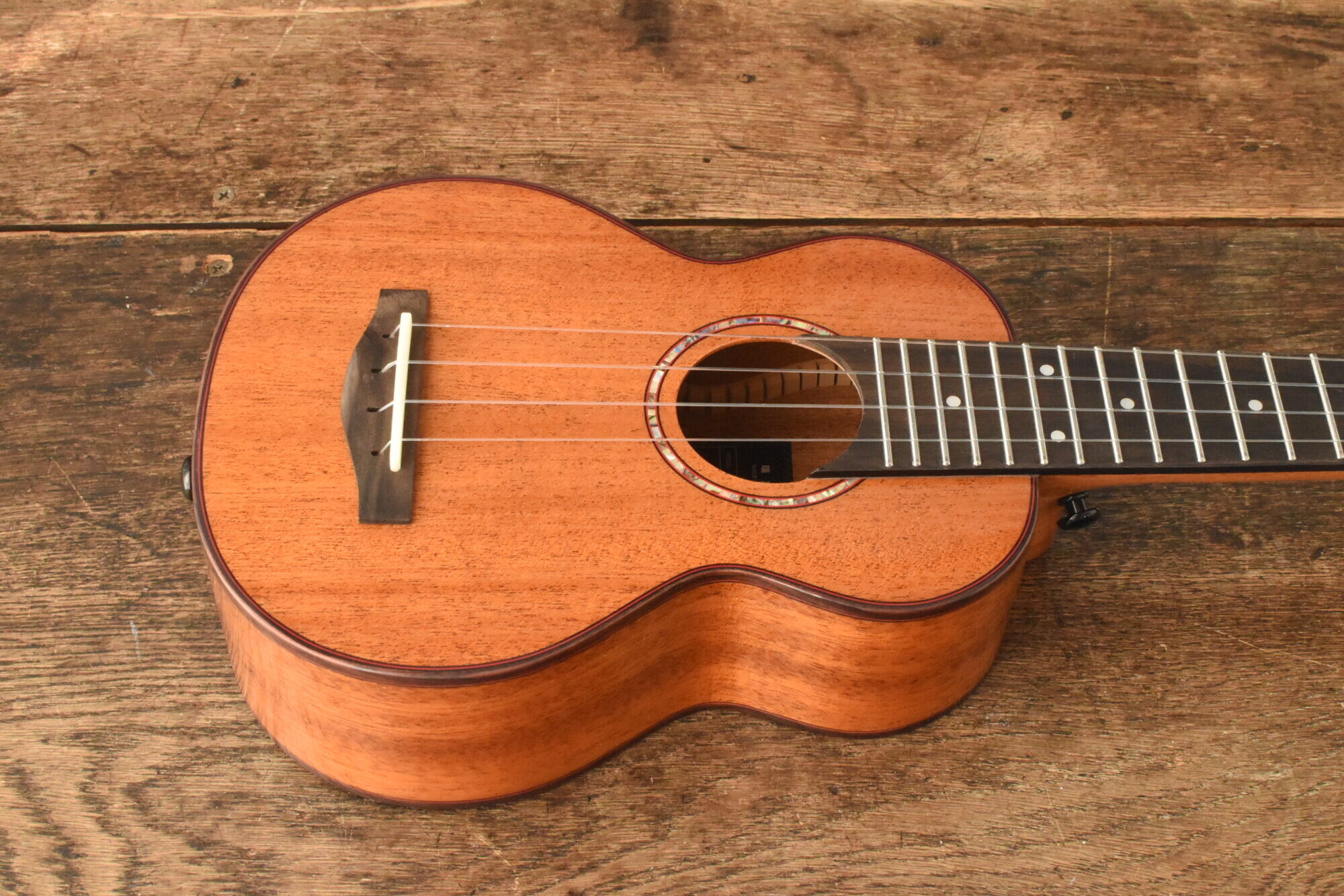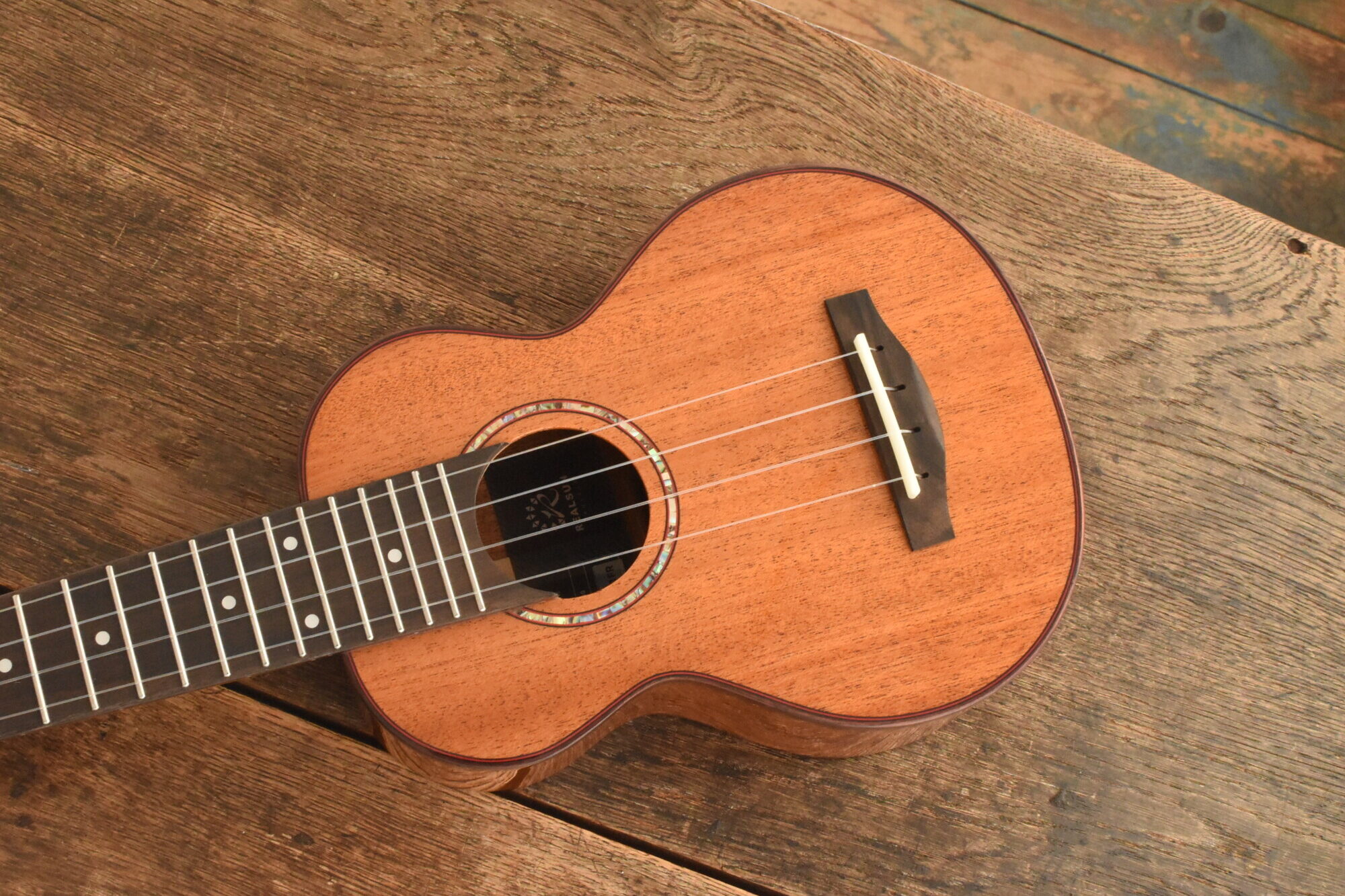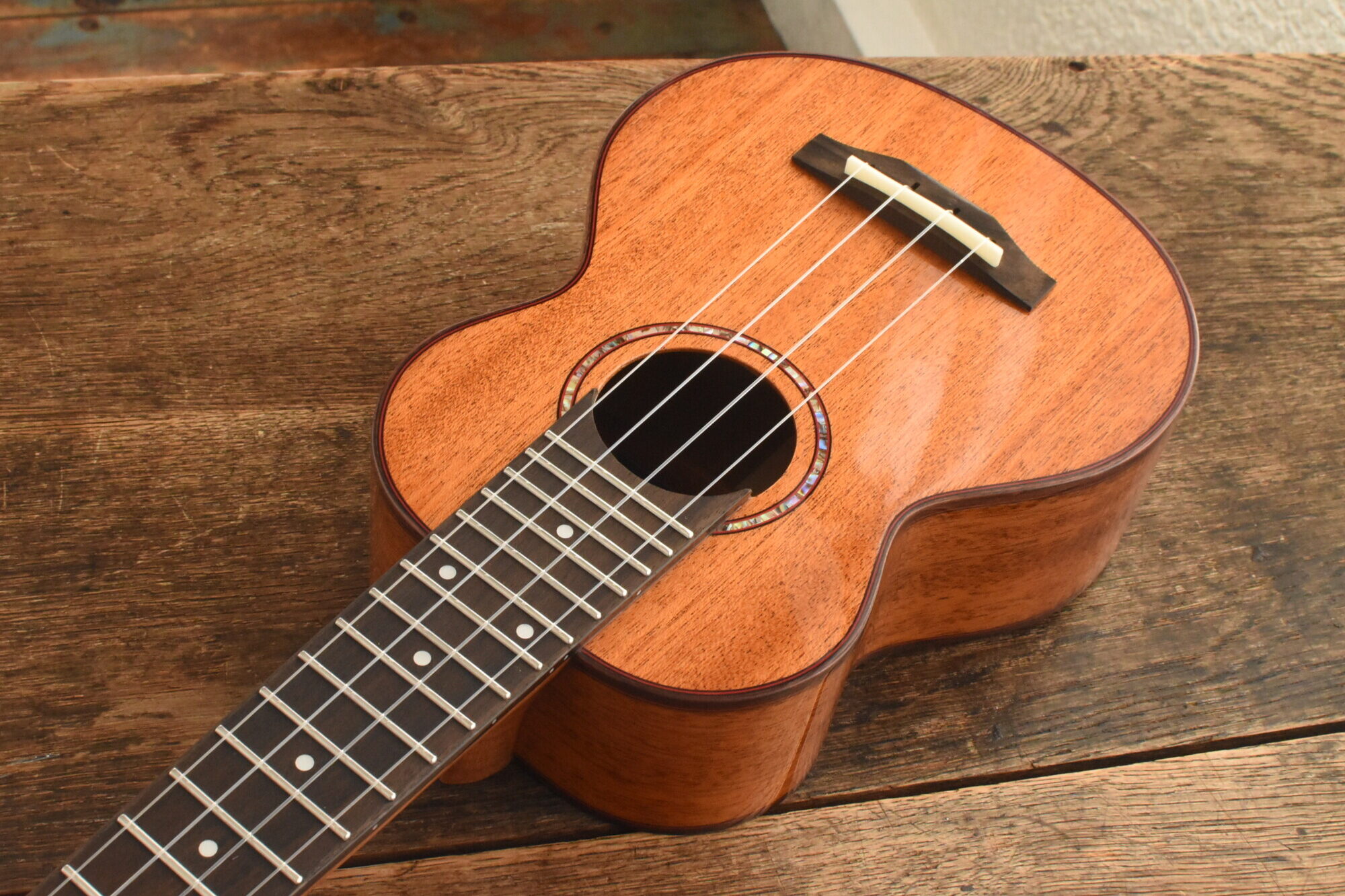 ボディにはアフリカンマホガニー単板を使用。ネックにはオクメ、指板&ブリッジにはローズウッドを使用しています。
