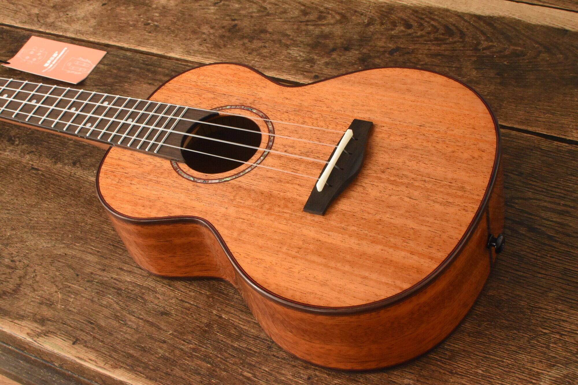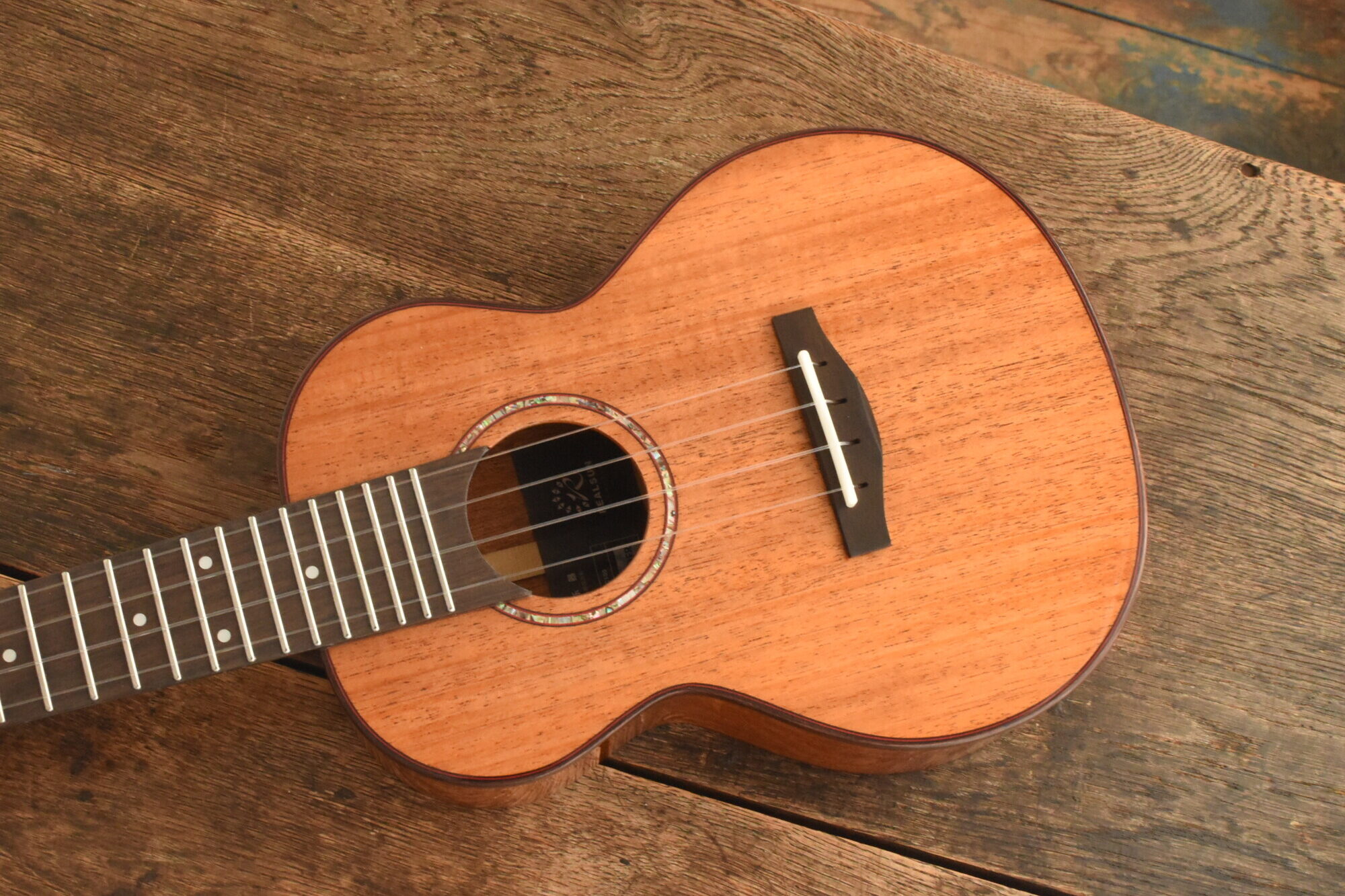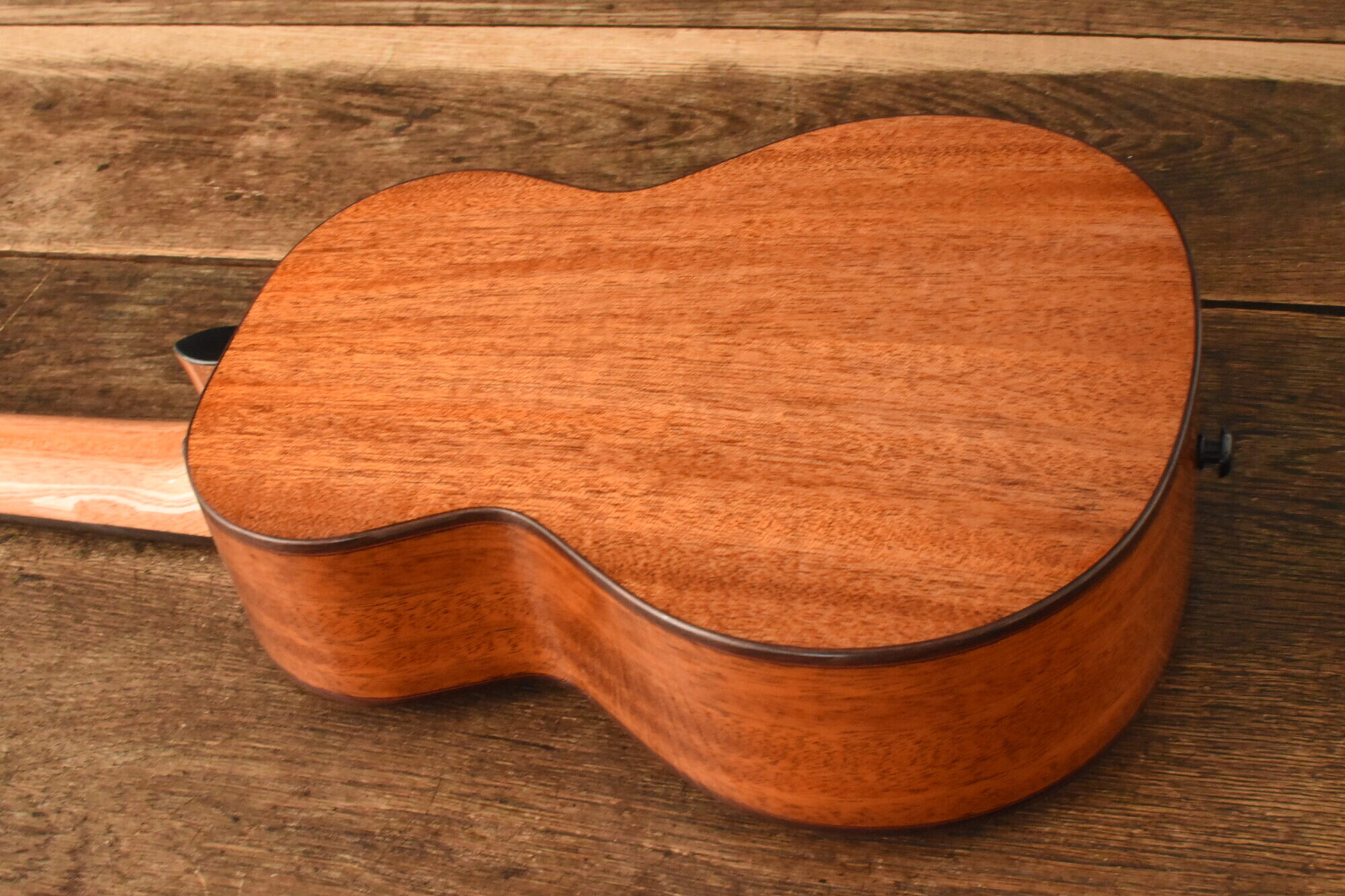 ボディにはアフリカンマホガニー単板を使用。ネックにはオクメ、指板&ブリッジにはローズウッドを使用しています。