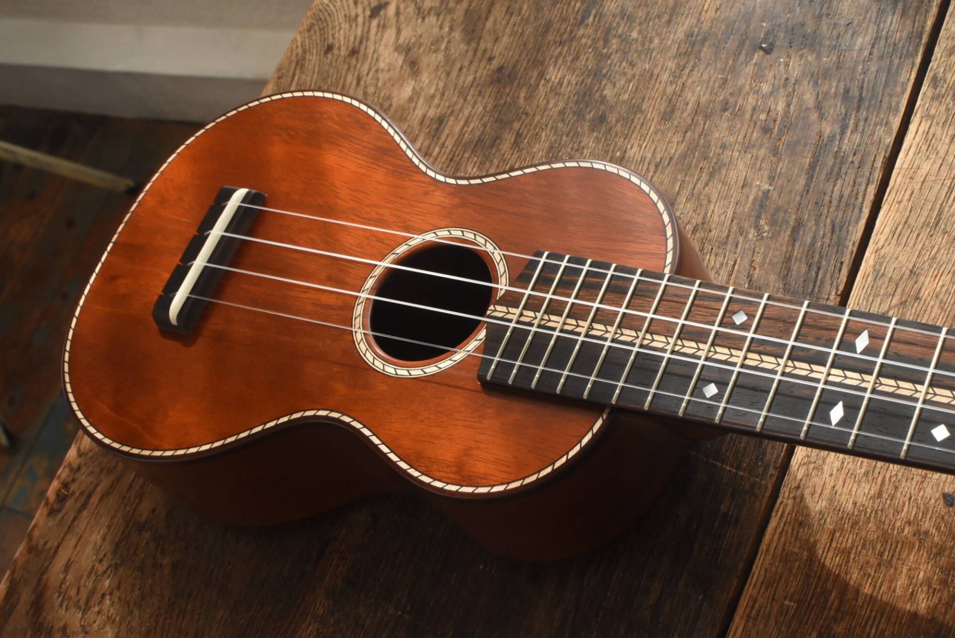 ウクレレ、ギターともに、ルーツミュージックの香りのする楽器を作り続けています。