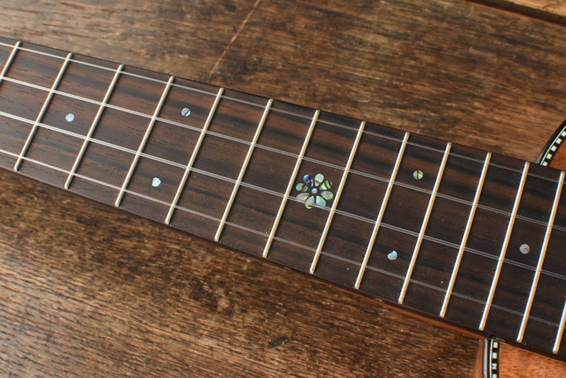 本器はソプラノサイズのボディに、377mmのコンサートスケールを採用したソプラノロングネックサイズ。14Fジョイント・18F仕様。