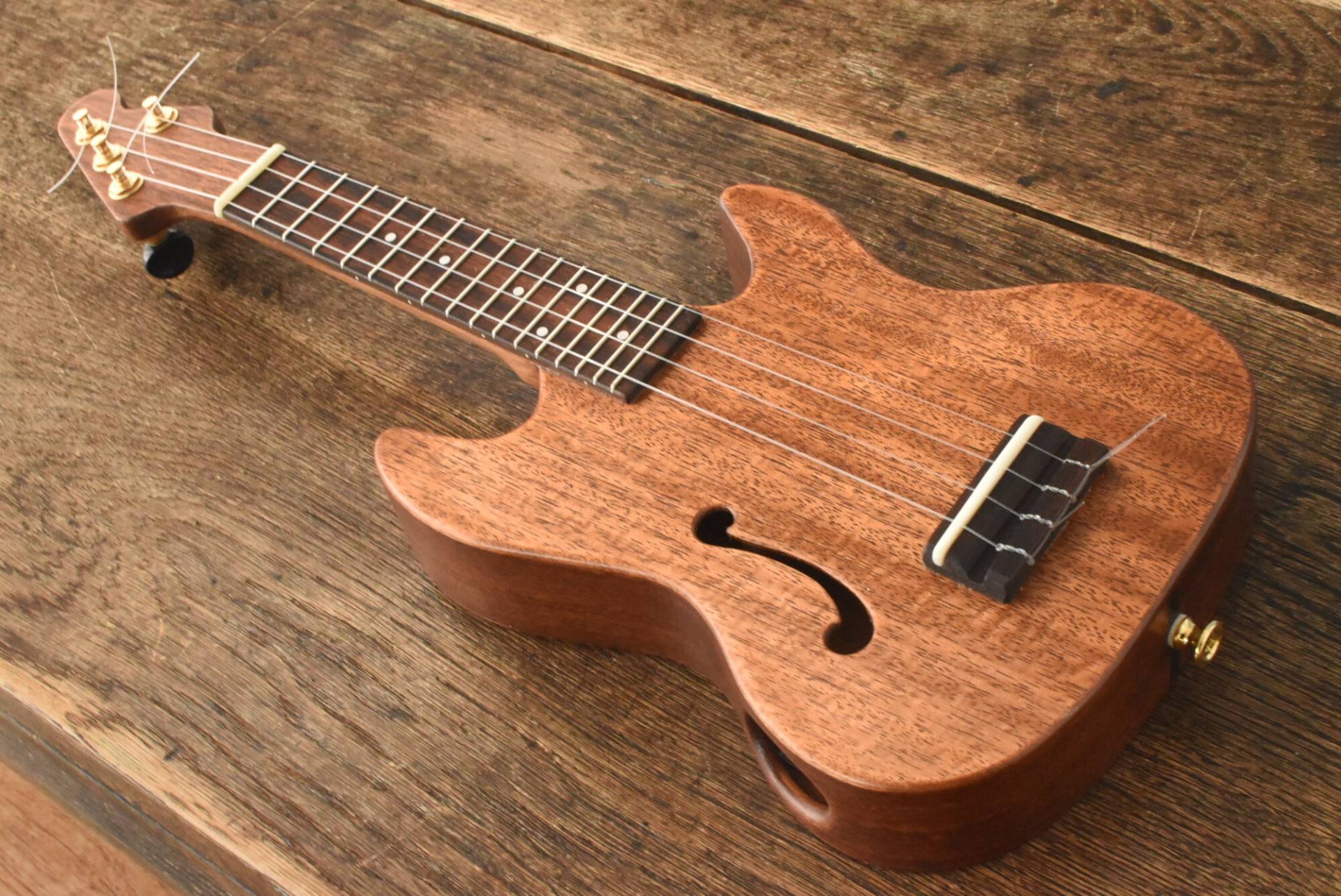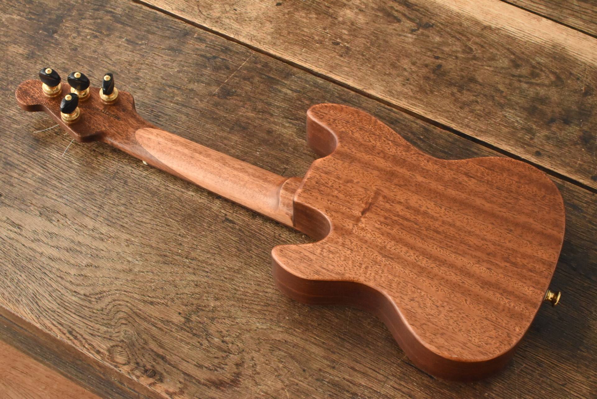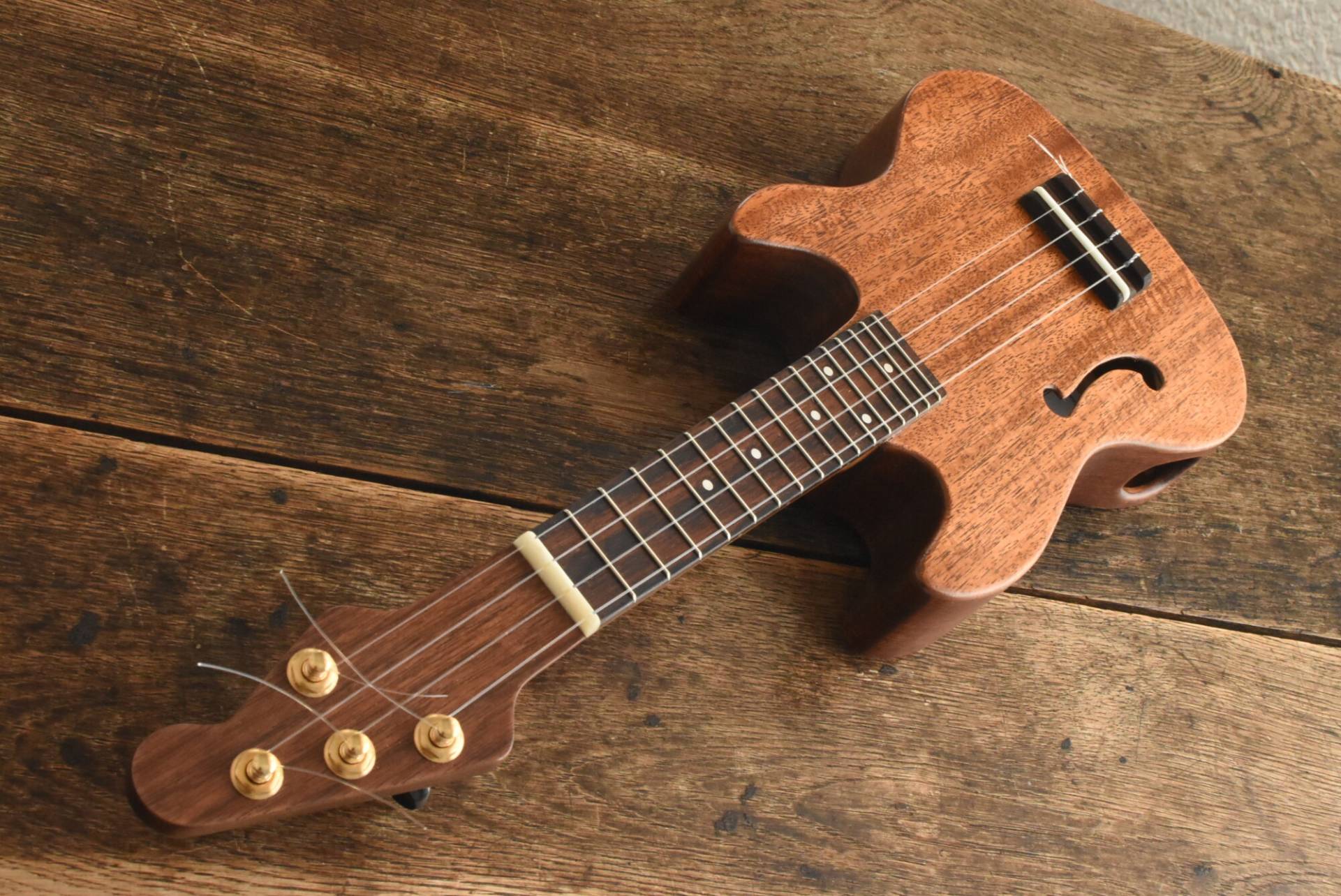 小さなボディですが、独自形状のボディシェイプにより右手が添えやすく抱え心地も抜群。ネックもローポジションの押弦がしやすいシェイプとなっており、弾き心地も良好です。