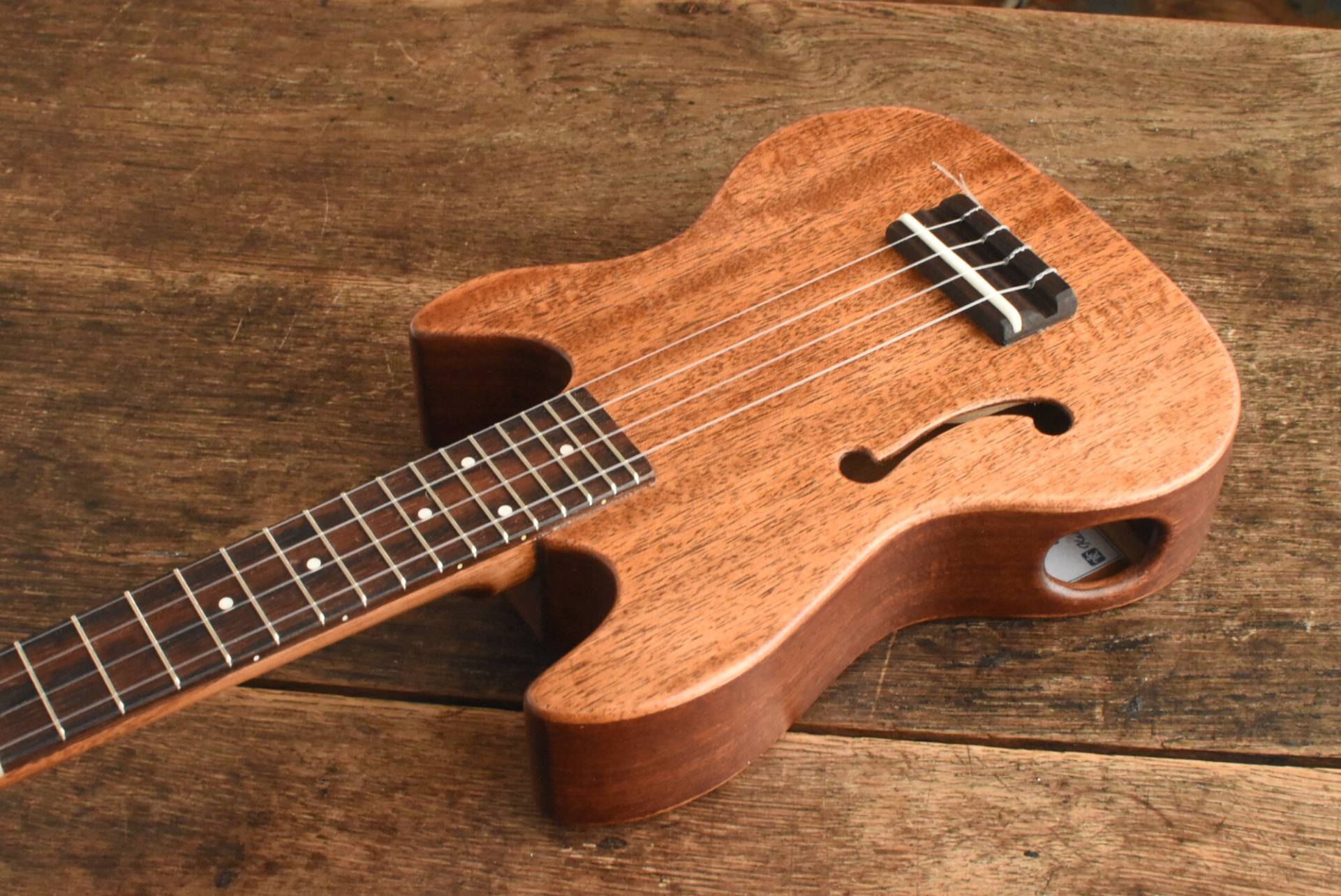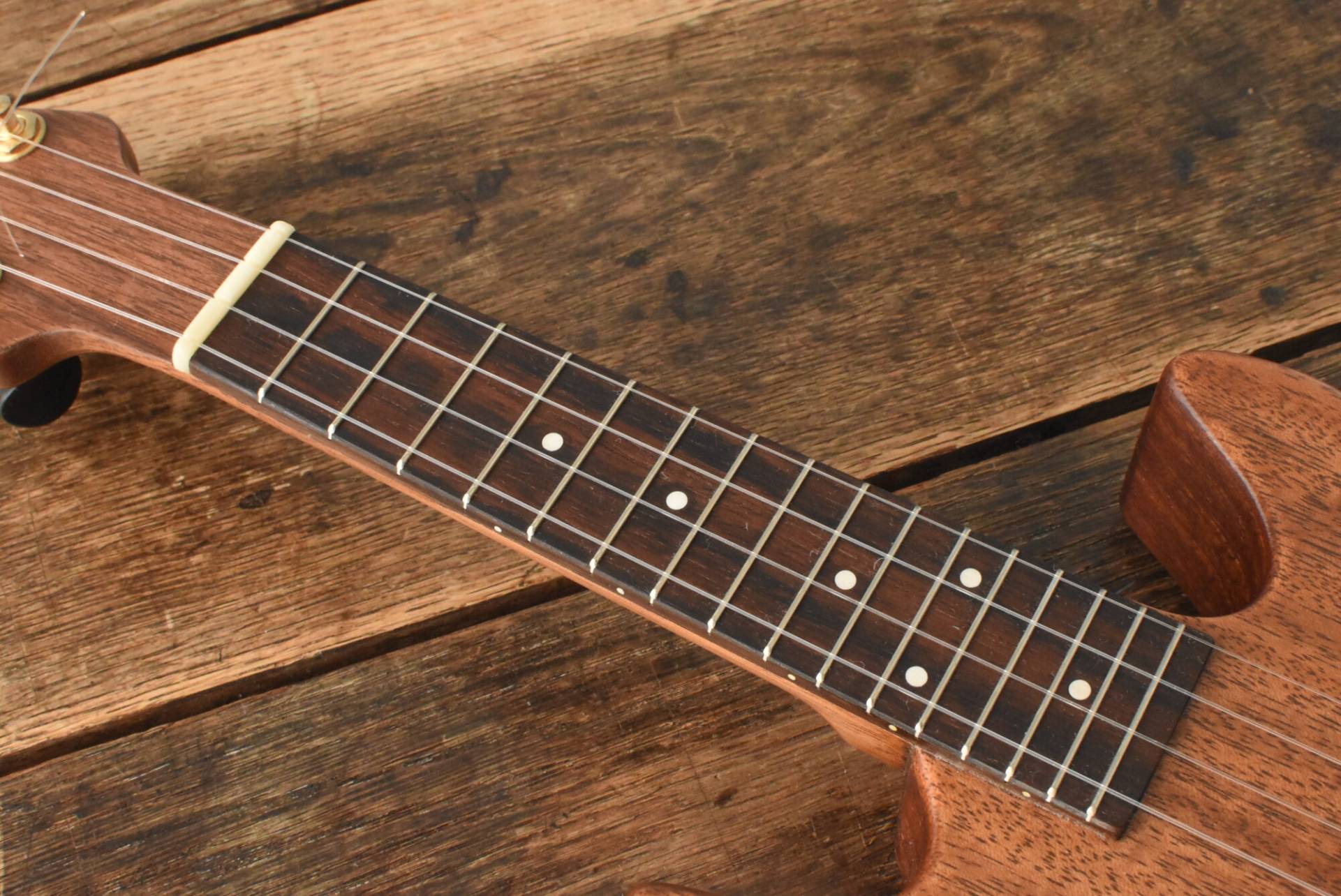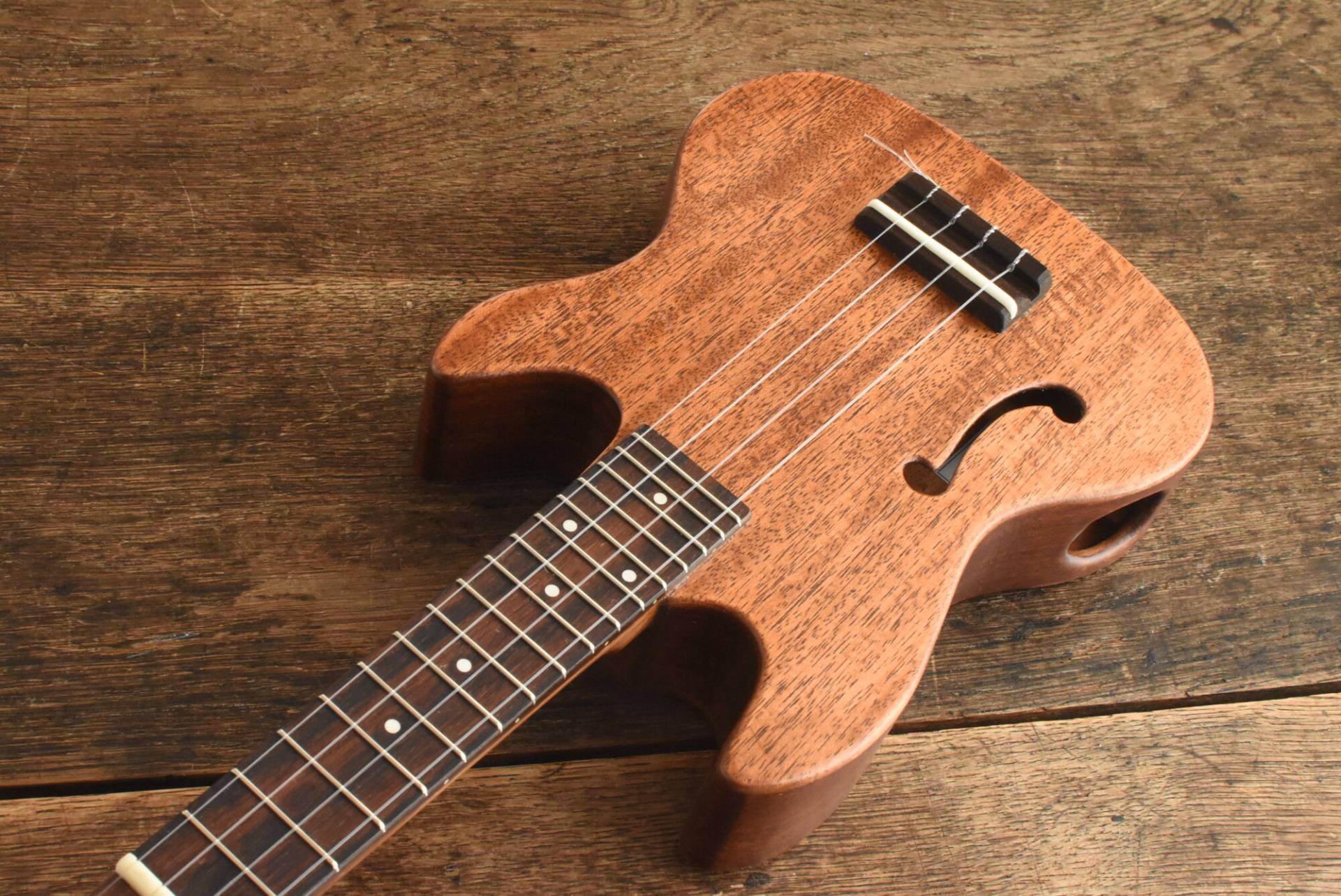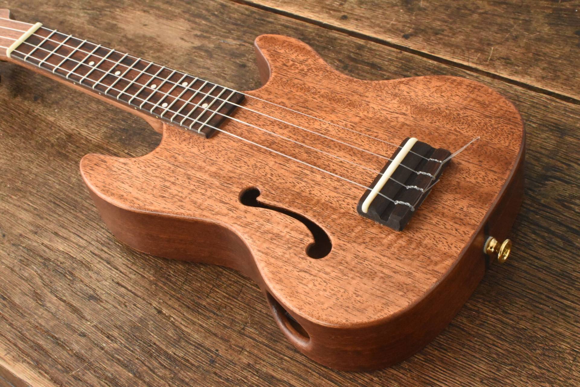 小さなボディですが、独自形状のボディシェイプにより右手が添えやすく抱え心地も抜群。ネックもローポジションの押弦がしやすいシェイプとなっており、弾き心地も良好です。