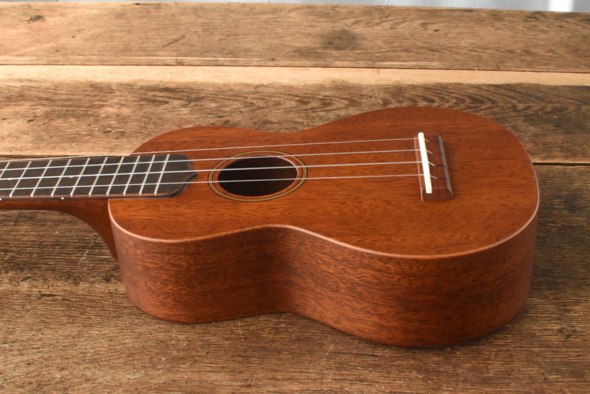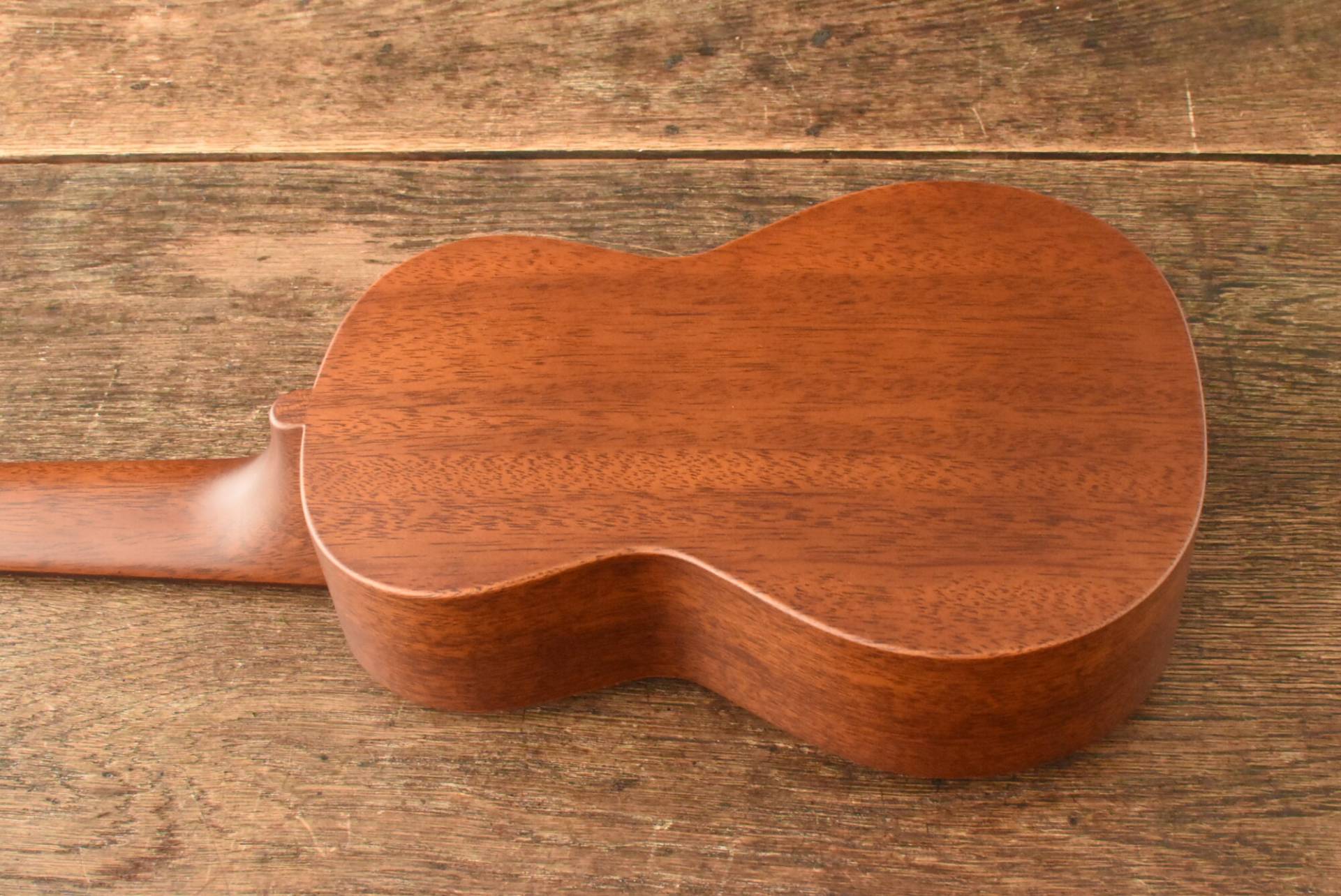 ボディにはアフリカンマホガニー単板を使用。ネックにもアフリカンマホガニー、ローズウッド指板&パーフェローブリッジ。