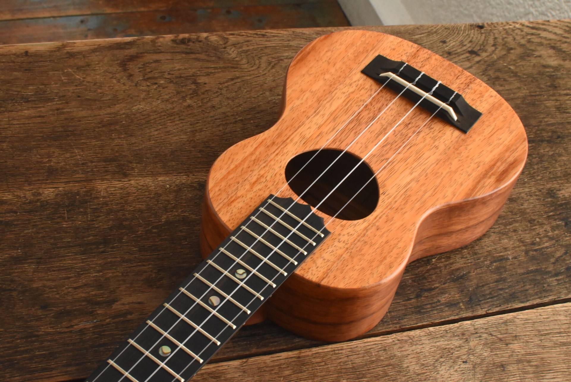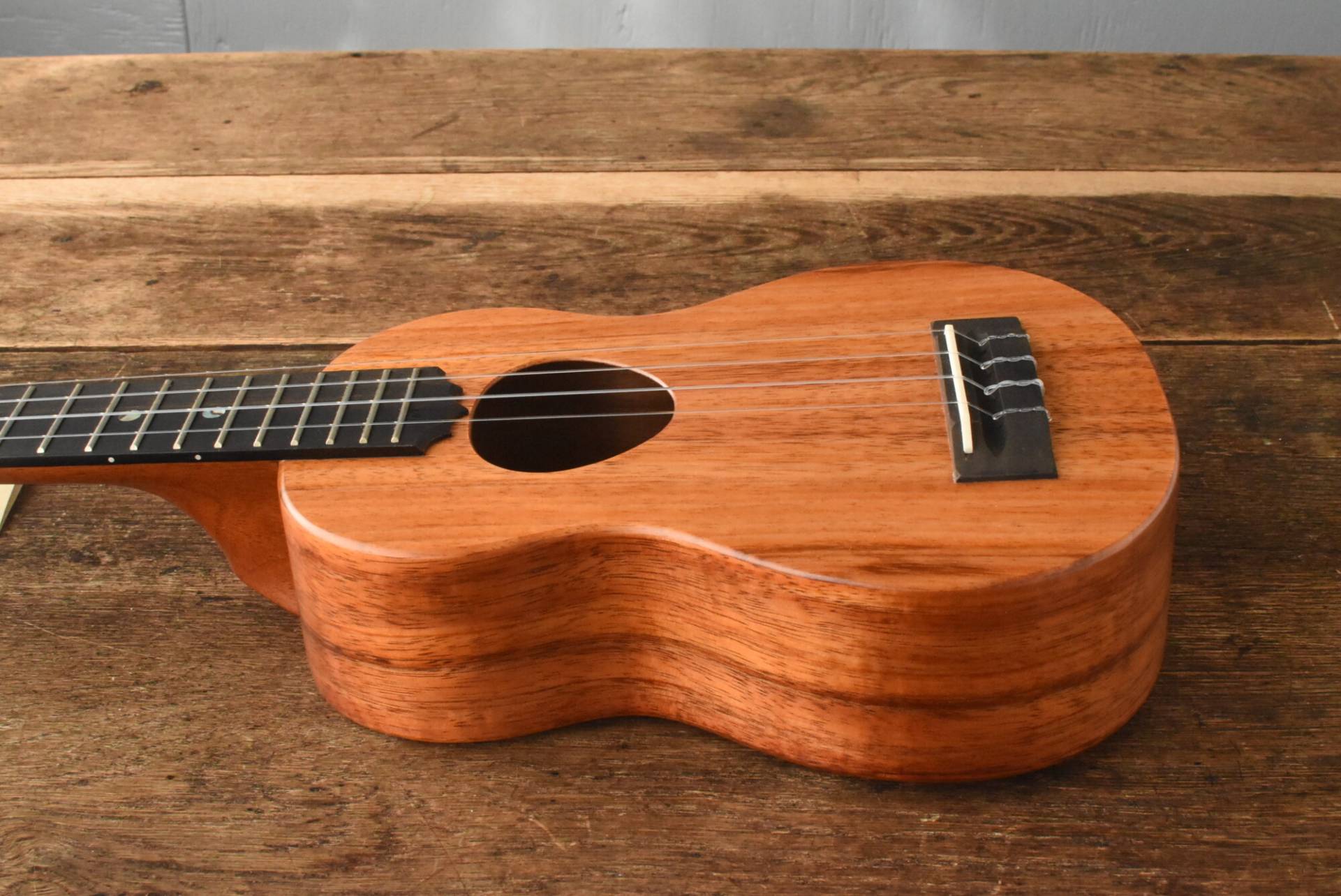ソプラノサイズのボディに、388mmのコンサートスケールを採用したソプラノロングネックサイズ。14Fジョイント・17F仕様。