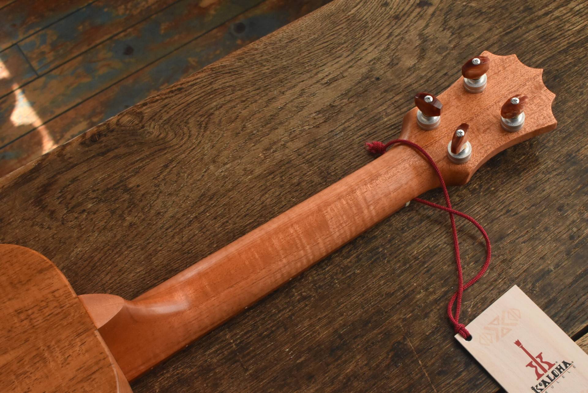 塗装はさらりとした質感の艶消しサテン仕上げ。ペグには操作性に優れた安心のゴトーUPTを採用。ノブのカラーも従来のKoAlohaペグを連想させるブラウンカラーに。