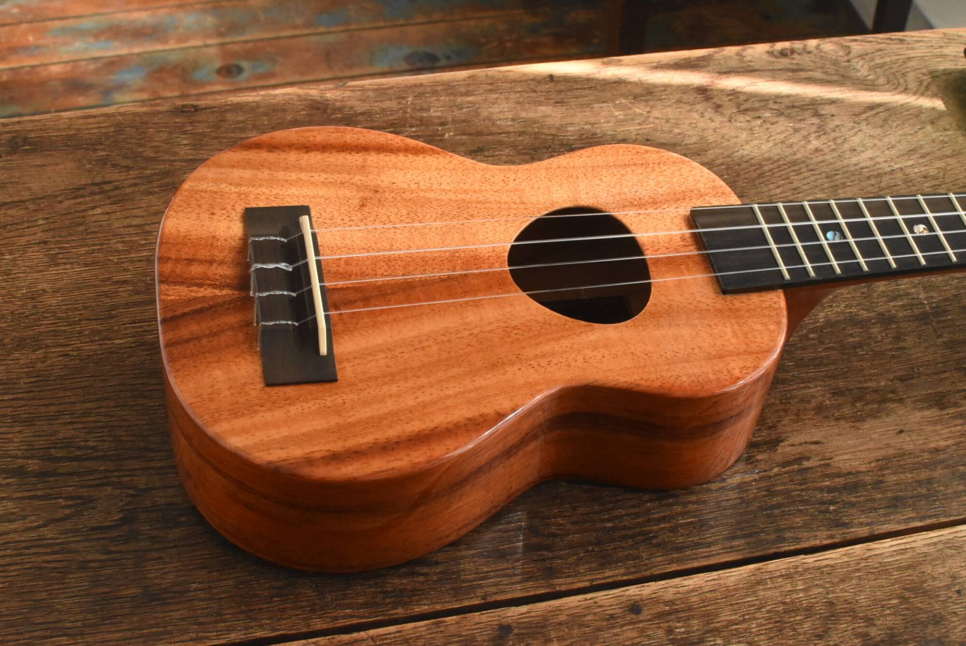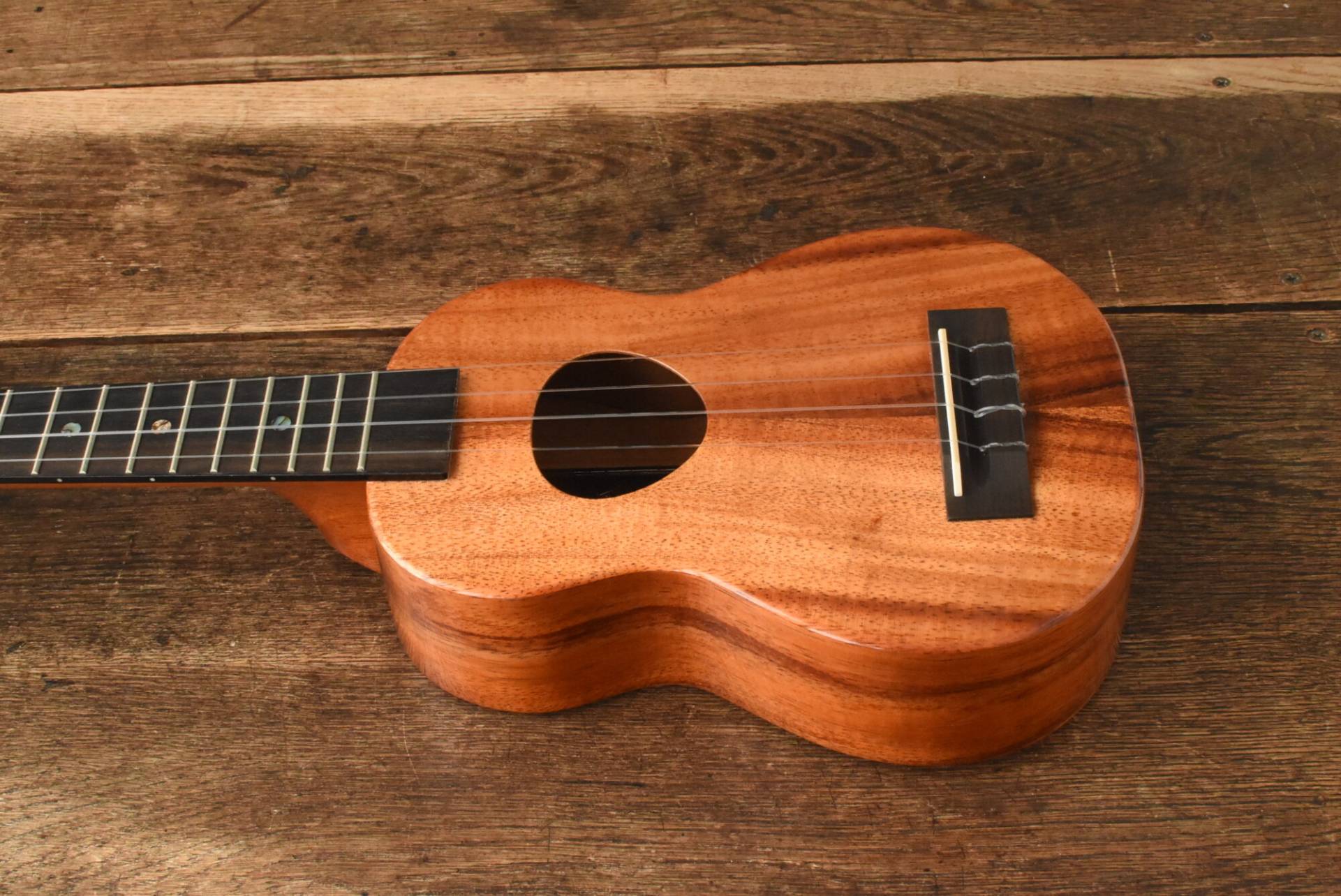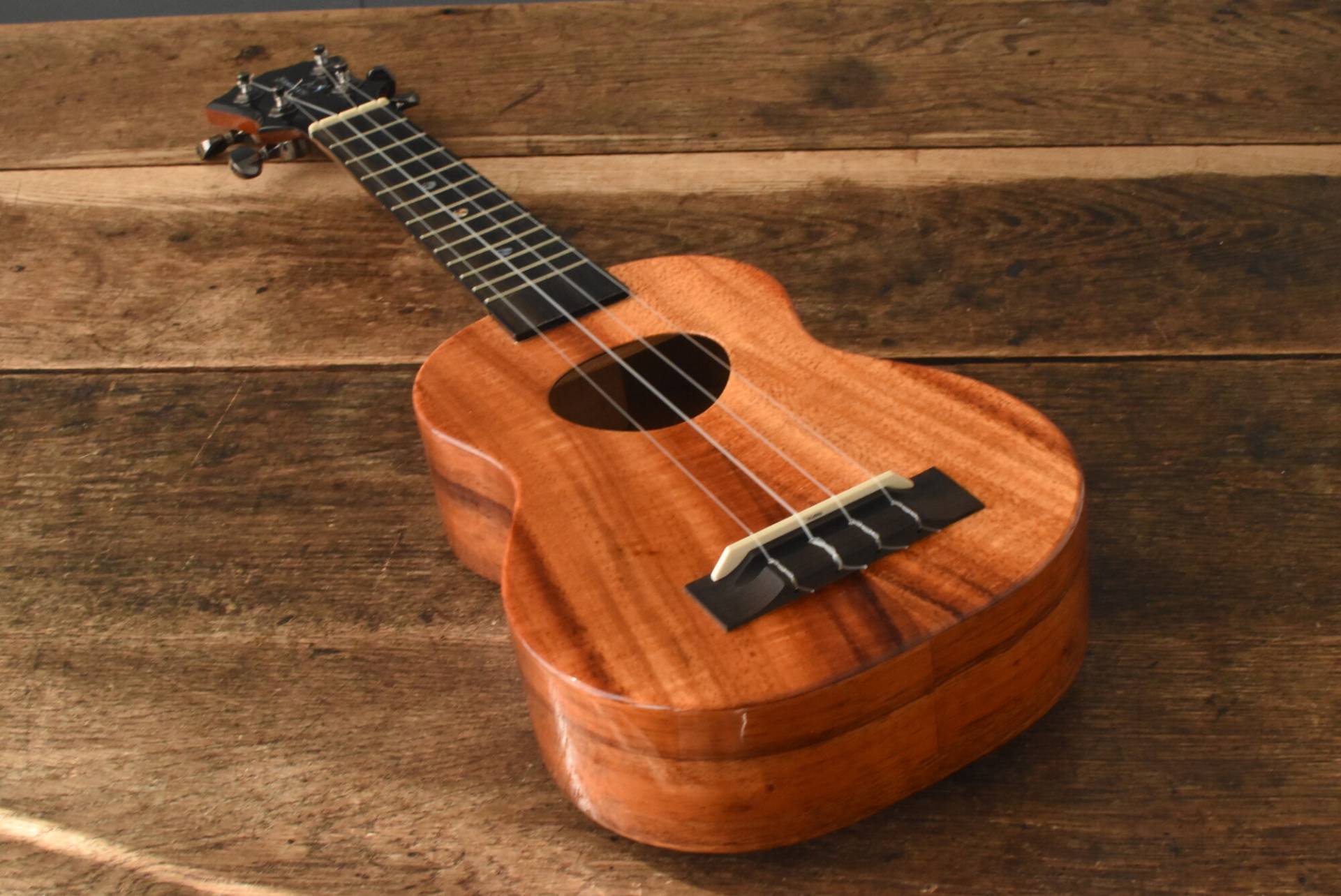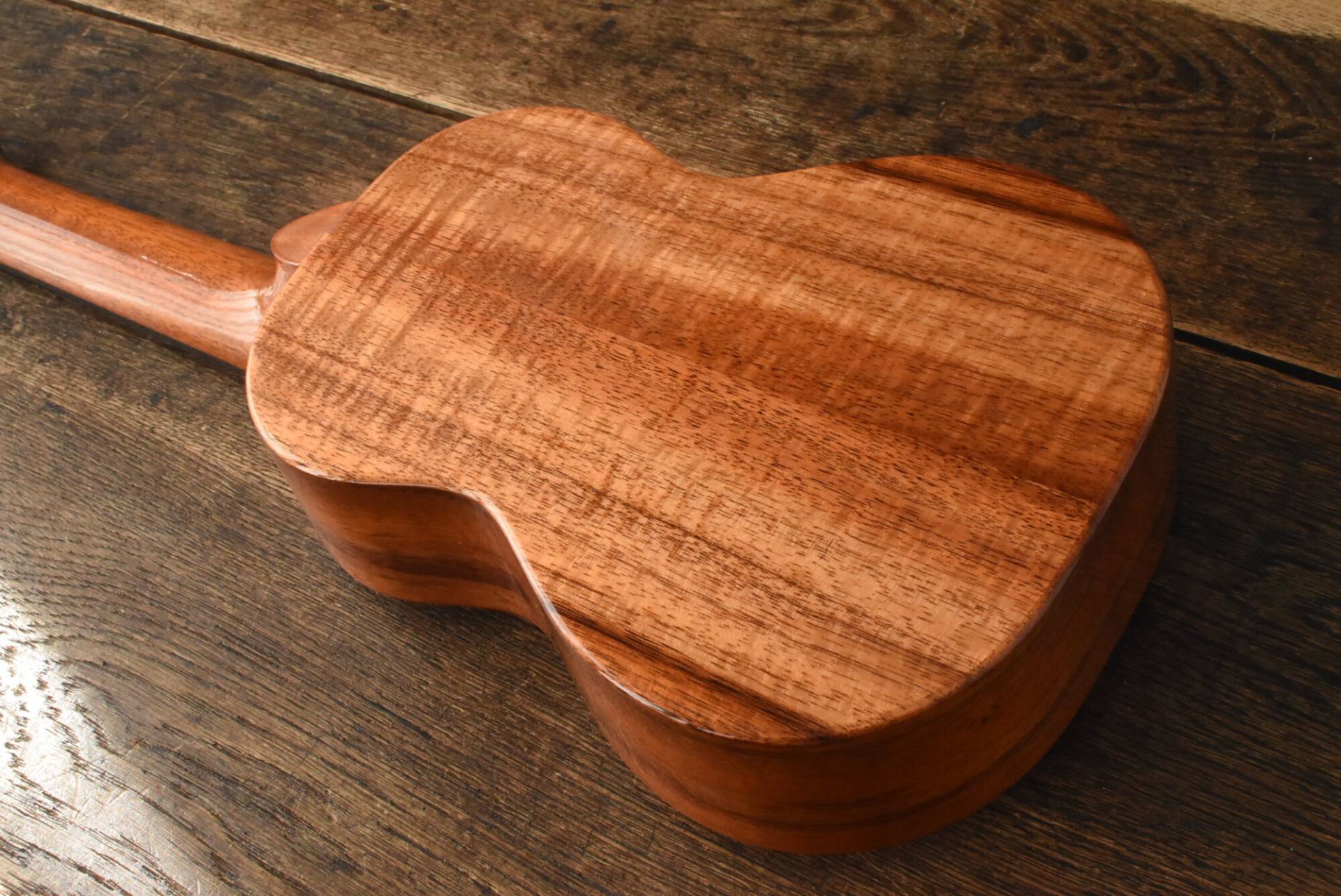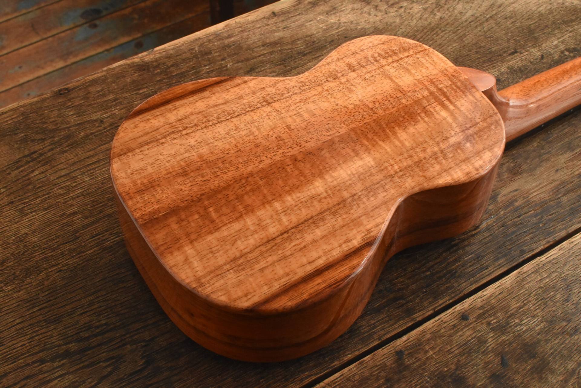 塗装は艶のあるグロスフィニッシュ。ハワイアンコアの美しい木目をさらに引き立てます。